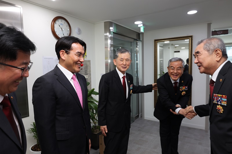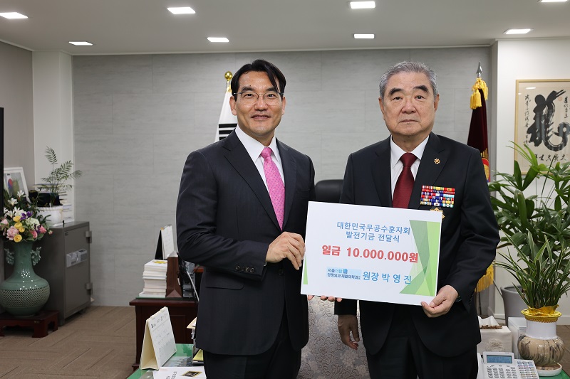 더탑 박영진 원장은 3.31일 대한민국 무공수훈자회 회장실에서 세종시 무공수훈자회 발전 기금 1천만 원을 기부식을 가졌다. / 사진 출처 = 대한민국 무공수훈자회 세종시지부 제공