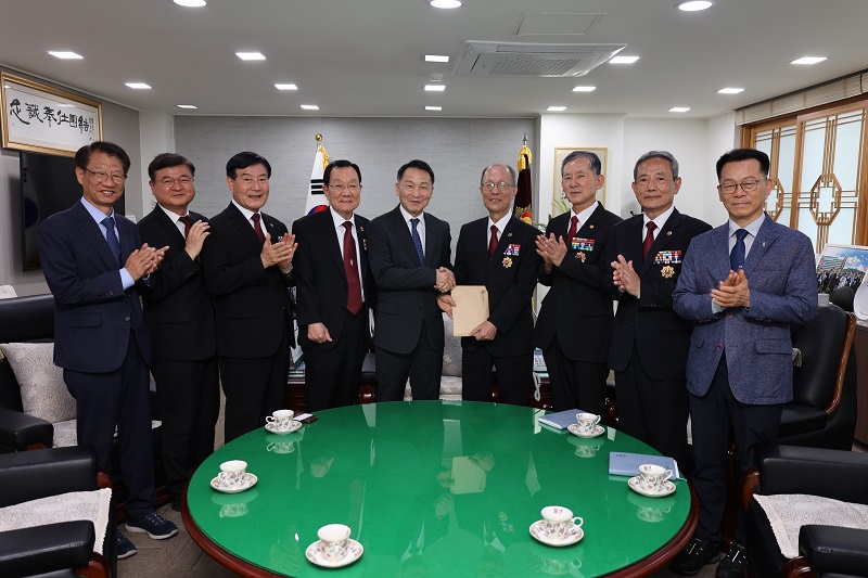 9.26(금)10:30~ 대한민국무공수훈자회 국가유공자들을 격려하기위해 국가안보실 김현종1차장이 본회를 방문하였다.