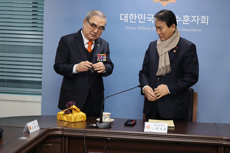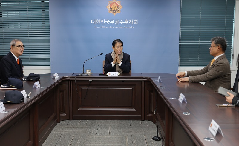 2026.1.20(화)권오을국가보훈부장관이 무공수훈자회를 방문했다. 권장관은 국가유공자 예우증진에 앞장서는 무공수훈자회 회원들의 노고를 격려하고 직원들의 사기진작을 위해서도 노력하겠다고 말했다.