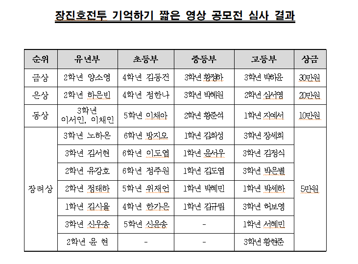 *장진호 전투 기억하기 짧은 영상(Short-form) 공모전 심사 결과를 발표합니다. 많은 관심으로 정성껏 응모해주신 모든 분들께 감사의 말씀을 드립니다.
