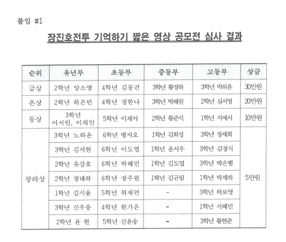 *장진호 전투 기억하기 짧은 영상(Short-form) 공모전 심사 결과를 발표합니다. 많은 관심으로 정성껏 응모해주신 모든 분들께 감사의 말씀을 드립니다.