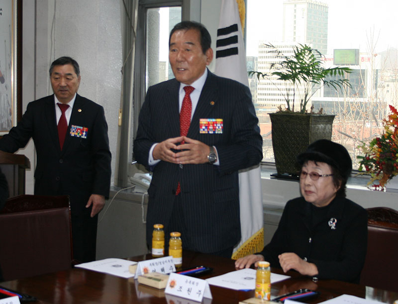 유족지부장 워크숍에 참석하여 인사말을 하는 본회 박종길 회장