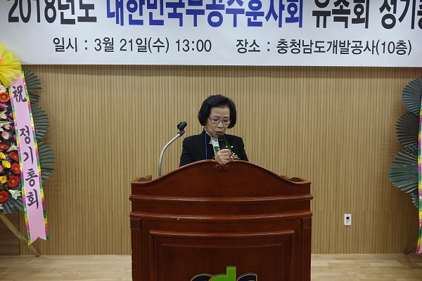 유족회 2018 정기총회, 국민의례 개인 및 단체표창을 수여하는 박종길회장 표창을 수여하고 박재금회장과 수상자의 기념사진 인사말을 하는 박재금회장 축사를 하는 박종길 회장 정기총회를 주관하고있는 박재금 유족회회장